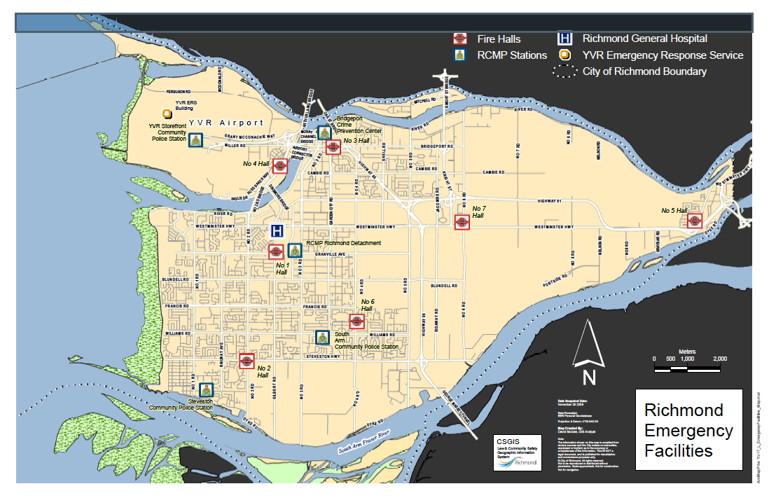 No. 1 Hall (Headquarters) No. 2 Hall (Steveston) No. 3 Hall (Bridgeport) No. 4 Hall (Sea Island) No. 5 Hall (Hamilton) No. 6 Hall (Shellmont) No. 7 Hall (Crestwood)